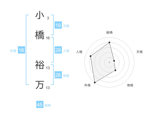 小橋 裕万さんを姓名の画数から五運を鑑定