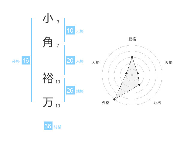 小角 裕万さんの外格は16画の5点!