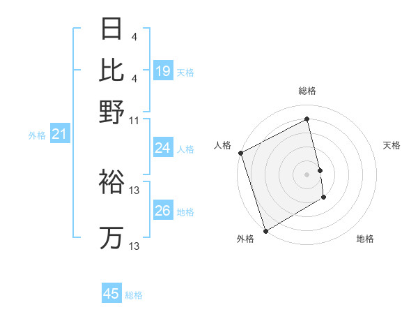 日比野 裕万さんの総格は45画の4点!