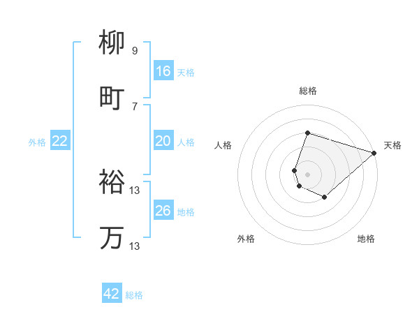 柳町 裕万さんを姓名の画数から五運を鑑定