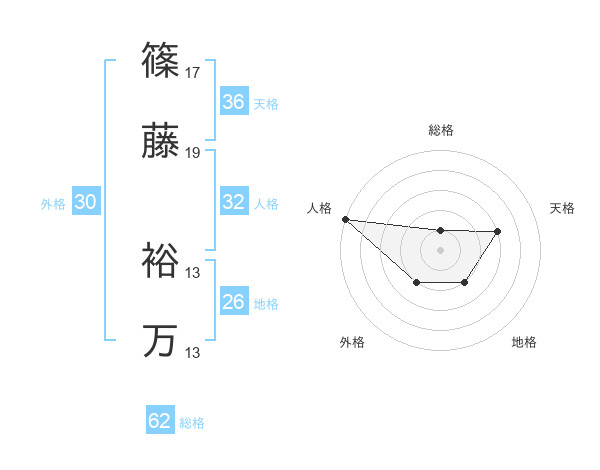 篠藤 裕万さんの外格は30画の2点!