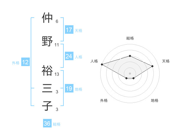 仲野 裕三子さんを姓名の画数から五運を鑑定