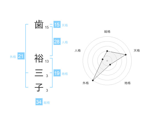 歯 裕三子さんを姓名の画数から五運を鑑定