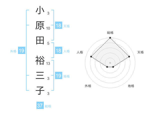 小原田 裕三子さんを姓名の画数から五運を鑑定