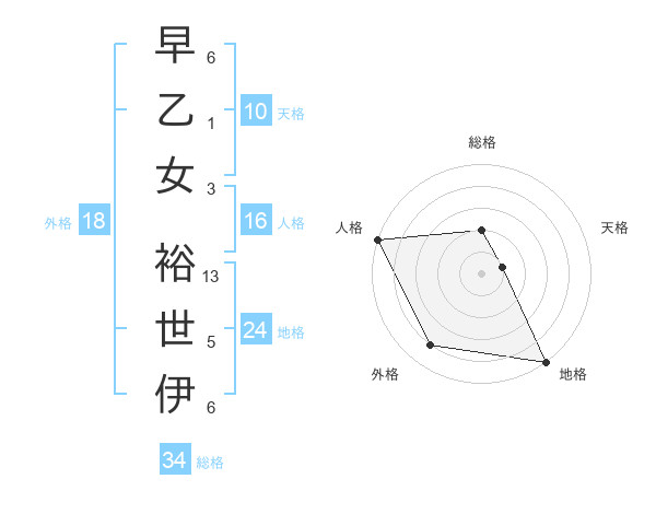 早乙女 裕世伊さんを姓名の画数から五運を鑑定