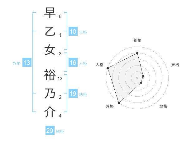 早乙女 裕乃介さんを姓名の画数から五運を鑑定