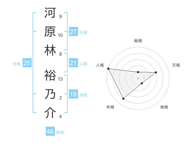 河原林 裕乃介さんの地格は19画の1点