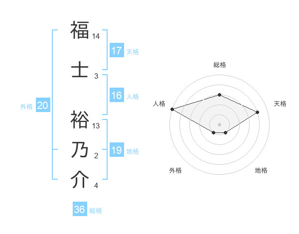 福士 裕乃介さんの天格は17画の4点!