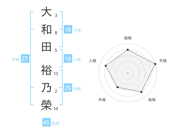 大和田 裕乃榮さんを姓名の画数から五運を鑑定