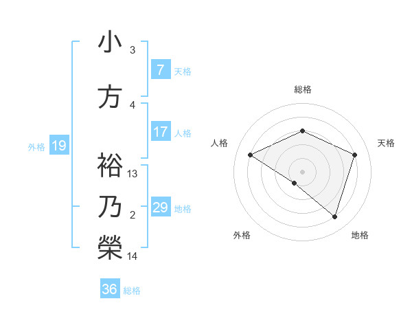 小方 裕乃榮さんを姓名の画数から五運を鑑定