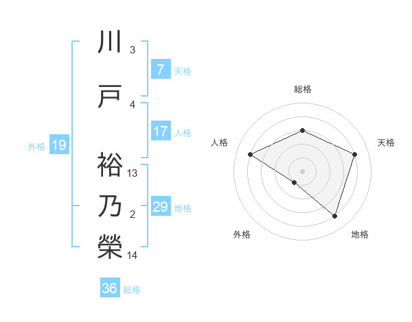 川戸 裕乃榮さんを姓名の画数から五運を鑑定