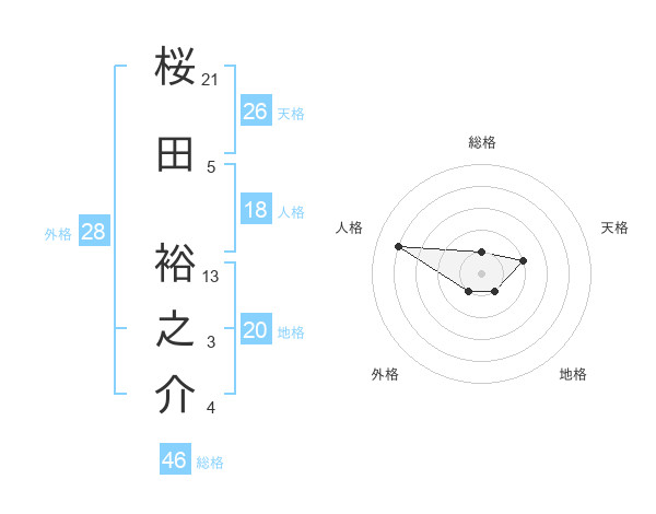 桜田 裕之介さんを姓名の画数から五運を鑑定