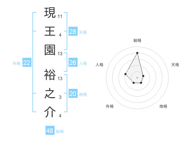 現王園 裕之介さんを姓名の画数から五運を鑑定