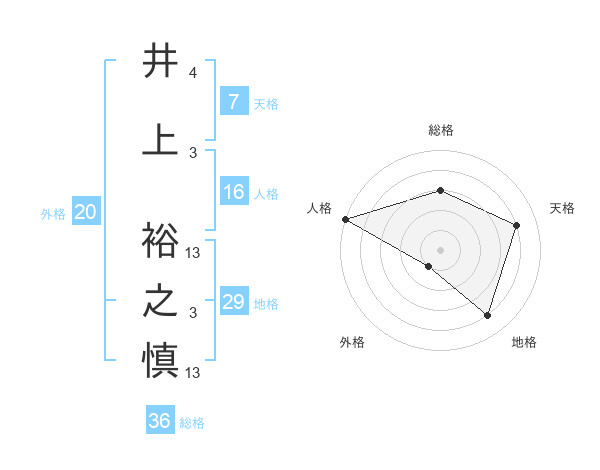 井上 裕之慎さんを姓名の画数から五運を鑑定