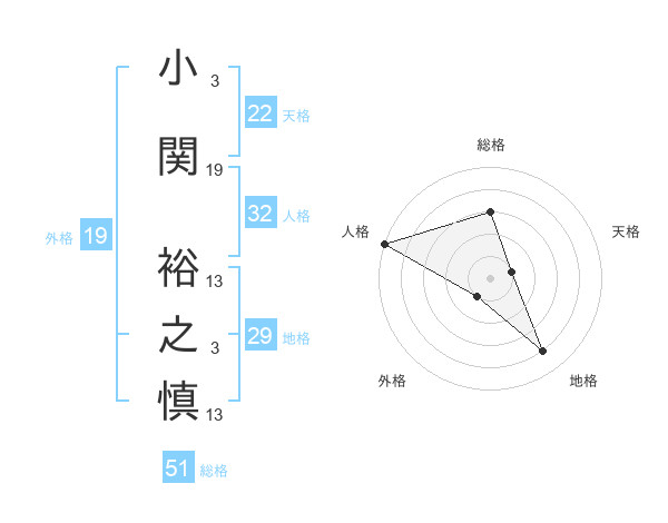 小関 裕之慎さんを姓名の画数から五運を鑑定