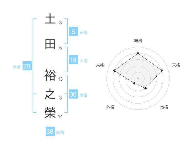 土田 裕之榮さんの総格は38画の4点!