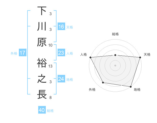 下川原 裕之長さんの外格は17画の4点!