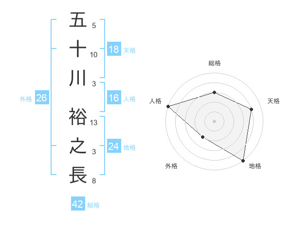 五十川 裕之長さんを姓名の画数から五運を鑑定