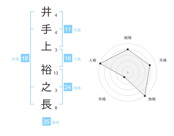 井手上 裕之長さんを姓名の画数から五運を鑑定
