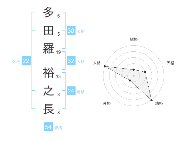多田羅 裕之長さんを姓名の画数から五運を鑑定