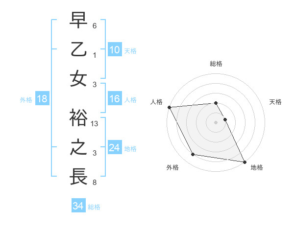 早乙女 裕之長さんを姓名の画数から五運を鑑定