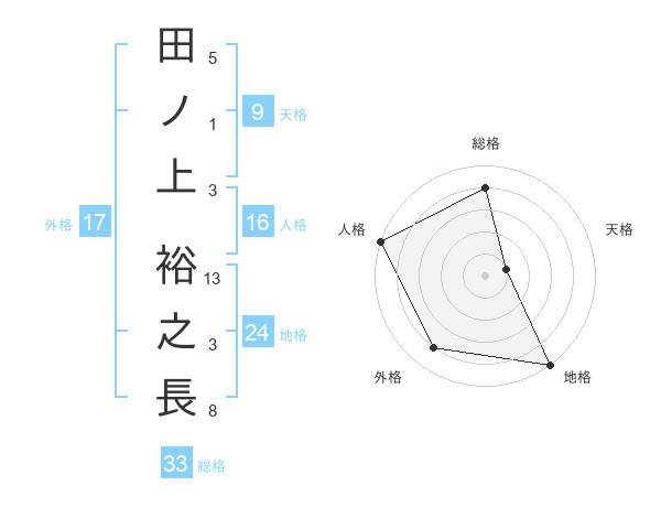 田ノ上 裕之長さんの地格は24画の5点!