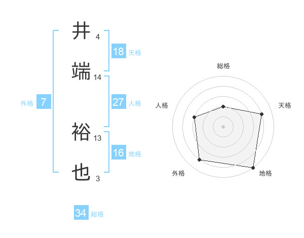 井端 裕也さんの天格は18画の4点!