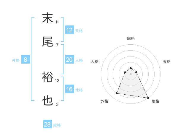 末尾 裕也さんを姓名の画数から五運を鑑定