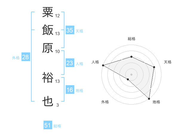 粟飯原 裕也さんを姓名の画数から五運を鑑定