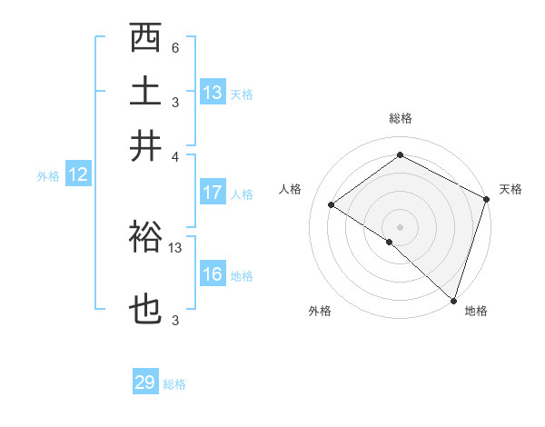 西土井 裕也さんの総格は29画の4点!