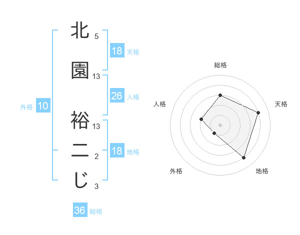 北園 裕二じさんを姓名の画数から五運を鑑定