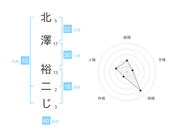 北澤 裕二じさんを姓名の画数から五運を鑑定
