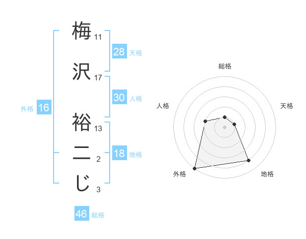 梅沢 裕二じさんの外格は16画の5点