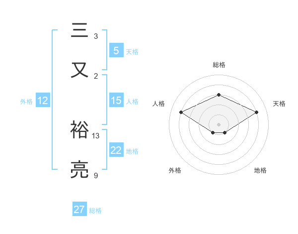 三又 裕亮さんを姓名の画数から五運を鑑定