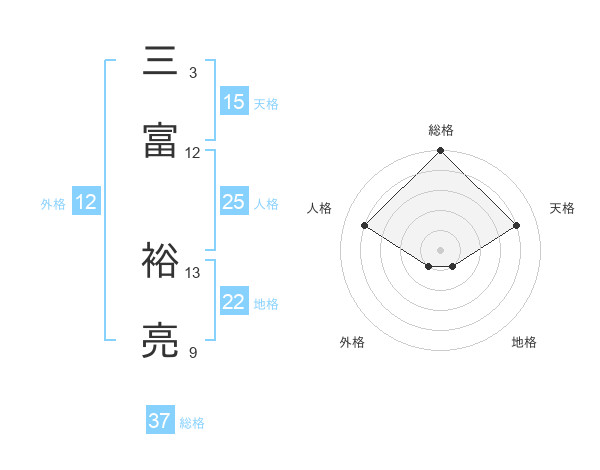 三富 裕亮さんを姓名の画数から五運を鑑定