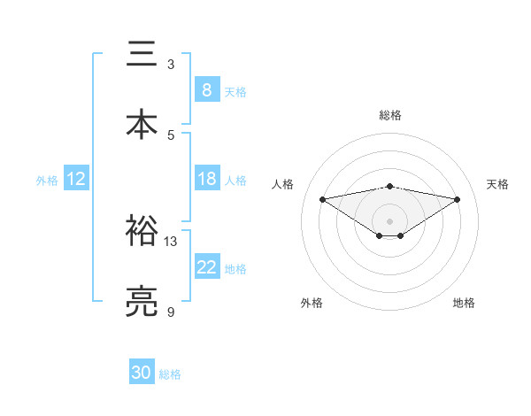 三本 裕亮さんの総格は30画の2点!