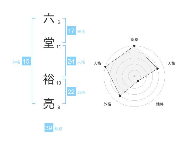 六堂 裕亮さんを姓名の画数から五運を鑑定
