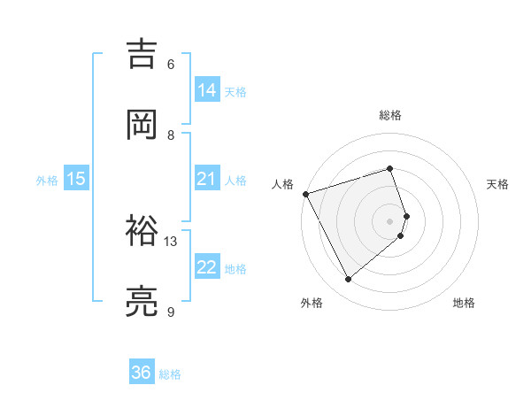 吉岡 裕亮さんの総格は36画の3点!