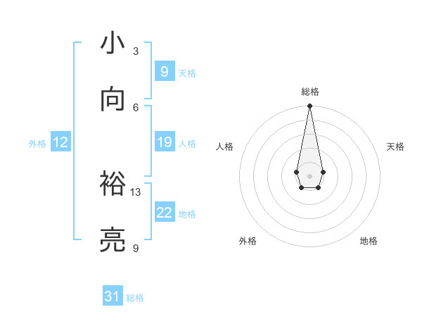 小向 裕亮さんを姓名の画数から五運を鑑定