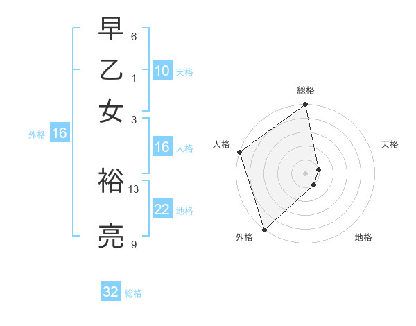 早乙女 裕亮さんを姓名の画数から五運を鑑定