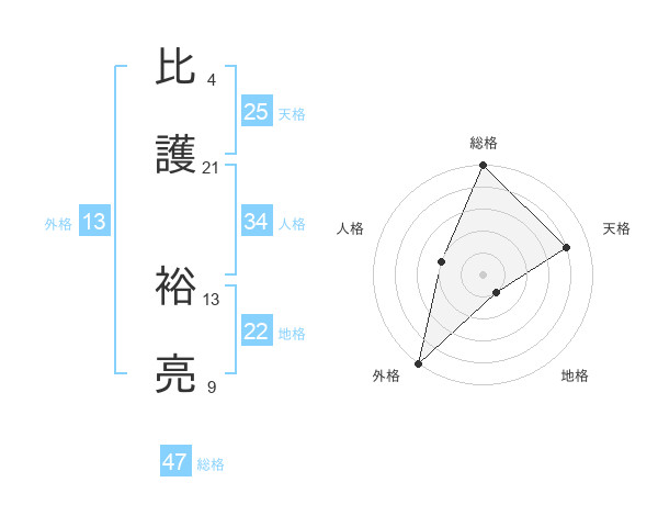比護 裕亮さんの総格は47画の5点!