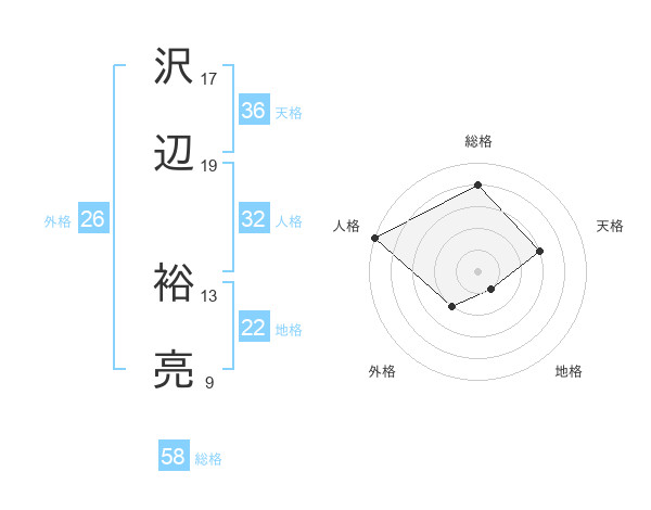 沢辺 裕亮さんの総格は58画の4点!