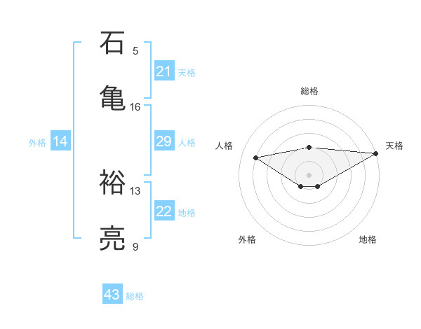 石亀 裕亮さんの天格は21画の5点!