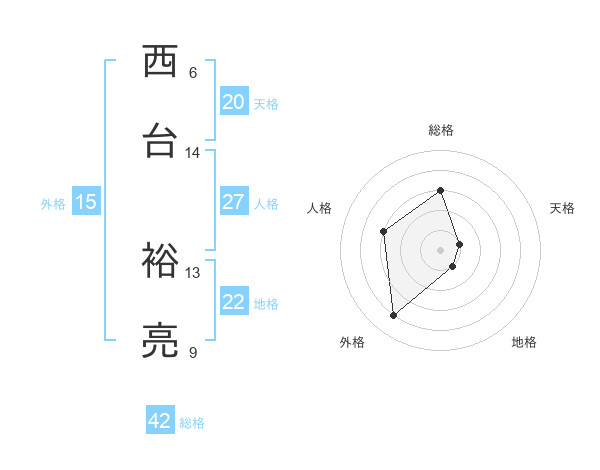 西台 裕亮さんの総格は42画の3点!