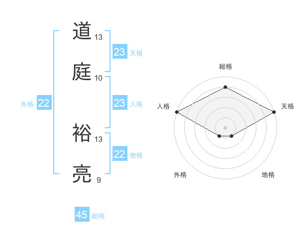 道庭 裕亮さんの総格は45画の4点!