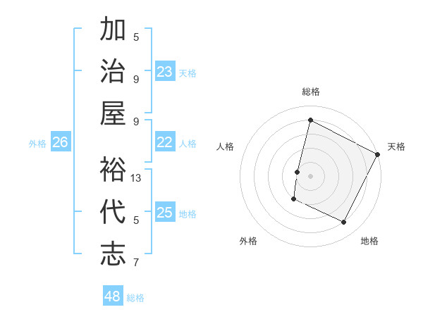 加治屋 裕代志さんの天格は23画の5点