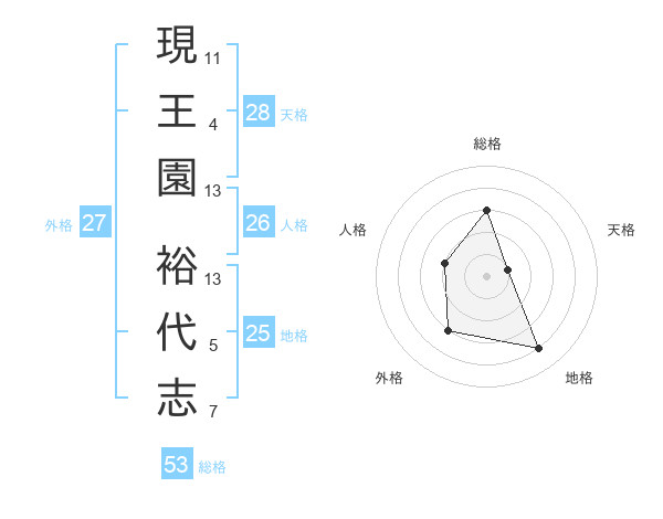 現王園 裕代志さんを姓名の画数から五運を鑑定