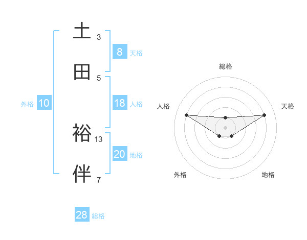 土田 裕伴さんを姓名の画数から五運を鑑定