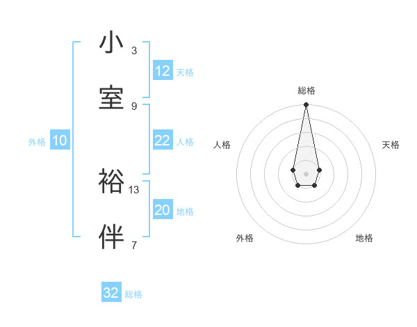 小室 裕伴さんを姓名の画数から五運を鑑定