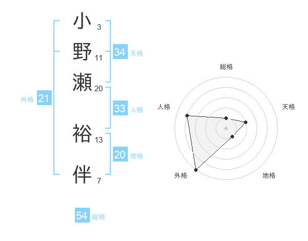 小野瀬 裕伴さんを姓名の画数から五運を鑑定